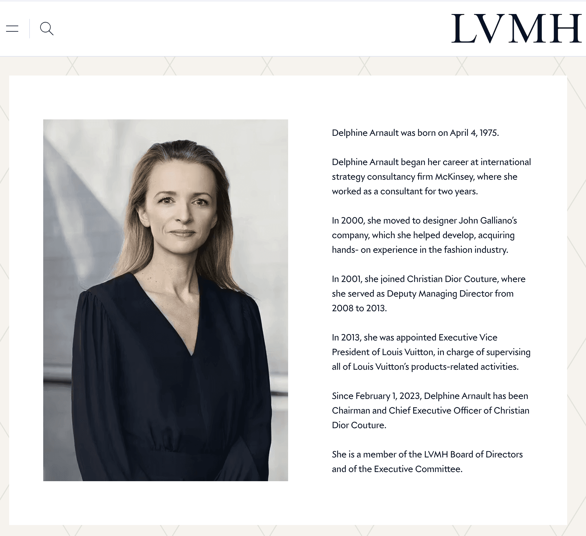 Delphine Arnault was appointed CEO of Christian Dior in February 2023. She is the eldest daughter of LVMH founder Bernard Arnault. But she earned this role. She spent years championing emerging designers through the LVMH Prize and helping shape Dior into one of the group's crown jewels. She also sits on Phoebe Philo's board of directors. At LVMH, she is the most senior woman in a group that controls dozens of luxury brands.